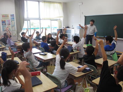 5年生理科の授業では、電流と電磁石の学習活動を進めています。今日の授業では、「電磁石は、磁石と比べてどんな性質があるのだろう。」の学習課題に向かって、個人やペア、グループなど、学びの方法を決めて、子供たちが主役の授業を進めていました。三島市内の先生方が、子供たちの活動の様子を参観しました。子供たちは、ちょっぴりドキドキしながらも、笑顔で生き生きと、友達との協働を楽しみながら学習することができました。