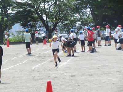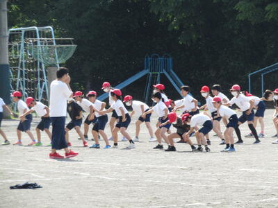 昼休みの運動場です。各学年で、子どもたちが、自主的に運動会に向けて練習する姿が見られました。