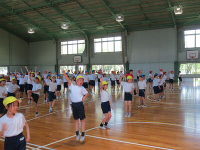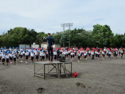 4時間目に、4年生が三島サンバの練習をしました。講師の方をお招きして、振り付けをていねいに教えていただきました。みんなかけ声も元気よく、上手に踊ることができました。運動会を楽しみにしていてください!