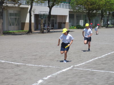 昨日とはうって変わって、今日はとても天気がよく、過ごしやすい日です。昼休みには多くの子が運動場で過ごしていました。運動会の練習をしている高学年、遊具で遊んでいる子たち、みんなとっても楽しそうです!