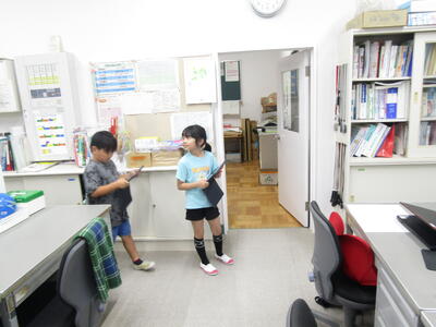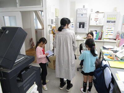 2年生が、生活科の授業で、学校の中をたんけんしていました。