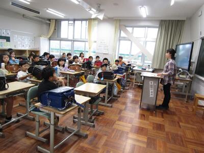 4年生は、それぞれ外国語活動「Hello,world!」、学活「ランキングを考えよう」、