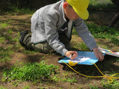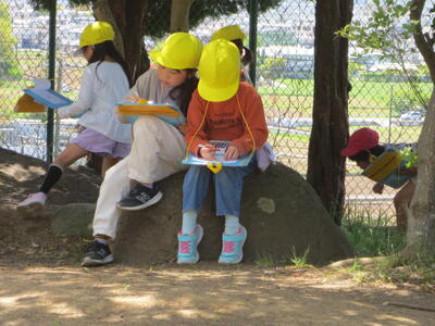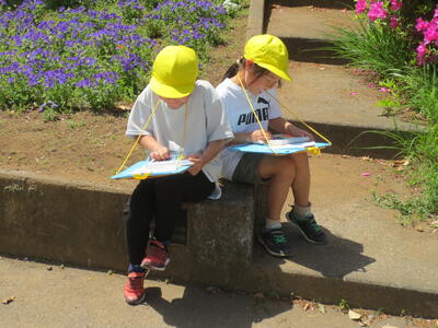 2年生が図工の時間に校庭に出て絵を描いていました。花の絵や四つ葉のクローバーの絵、ダンゴムシの絵など、春を感じさせるステキな絵がたくさんできあがりました。