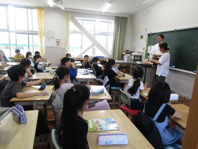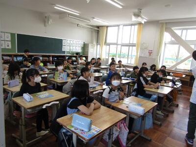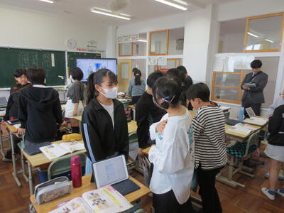 外国語活動の授業における説明を聞いたりする姿が見られました。
