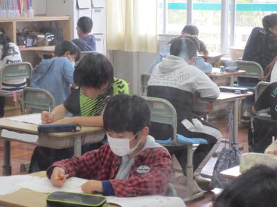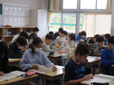 6年生が真剣に問題に取り組んでいます。今日は全国学力・学習状況調査の実施日です。全国の小学6年生が、ほぼ同じ時間帯で国語と算数の問題を解いています。