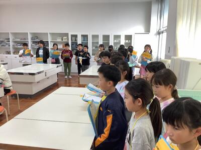 昼休みハロウィンの読み聞かせ会がありました。面白いお話をみんなワクワクしながら聞いていました。最後には合言葉を言うと、素敵な折り紙がもらえました。