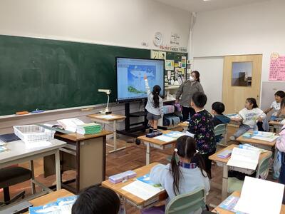 職場体験に来ている中学生が、6年生に中学校の紹介をする授業をしてくれました。委員会や部活、テストや行事について、事前に撮ってきた写真を見せながら説明してくれました。6年生の質問にも答えてくれて、素敵な授業になりました。授業後、6年生は、中学が楽しみになったと笑顔でした。