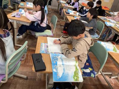 1年生の国語の授業では、「くじらぐも」のお話を読んで、考えたり表現したりしながら、学習を進めていきます。