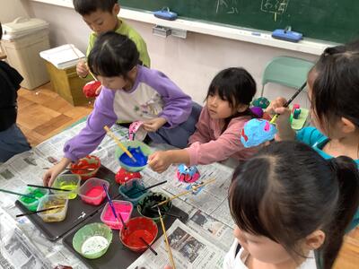 1年生図工の授業では、子供たちがアイデアいっぱいのはりこ作りにチャレンジです。