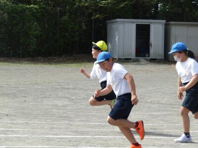 子どもたちは、少しでも速いタイムが出るように、ゴールまで全力で駆け抜けていました。