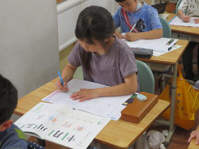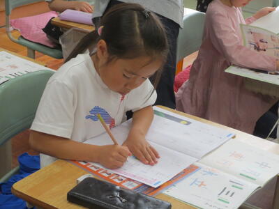 18日(木)の学習の様子です。2年生になって初めての書写の時間でした。お手本をよく見て、一字一字ていねいにノートに書いています。真剣な表情がいいですね!