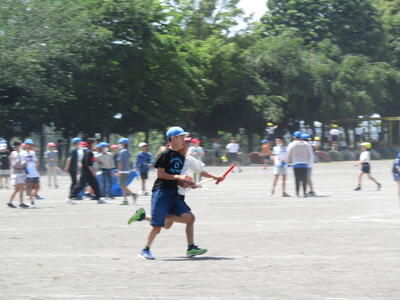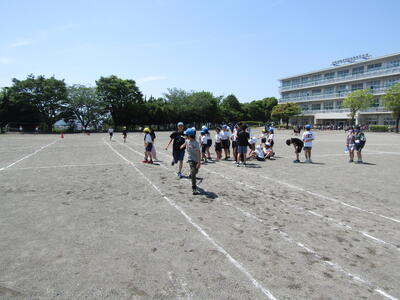 昼休みの運動場です。各学年で、子どもたちが、自主的に運動会に向けて練習する姿が見られました。