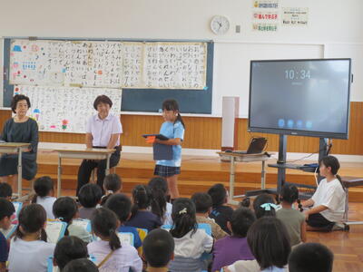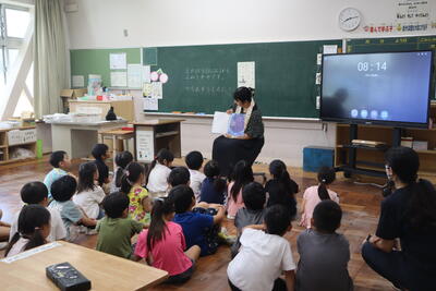 今日の昼休み、図書委員会のお兄さん、お姉さんによる読み聞かせが行われました。たくさんの子供たちが集まり、すてきな時間を過ごしました。読み聞かせが終わると、「2回目も来てみよう。」と楽しそうに話す姿が見られました。図書委員さん、とても上手にできていまいた。ありがとうございました。