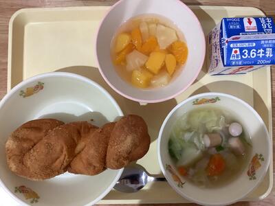 <献立名>揚げパン・ポトフ・フルーツカクテル・牛乳