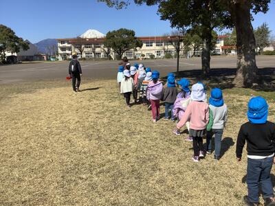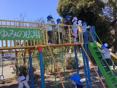 「お兄ちゃん、いるかな?」「ぼく、これできるよ!」とお昼休みのグランドでは、元気な園児の皆さんの様子が見られました。