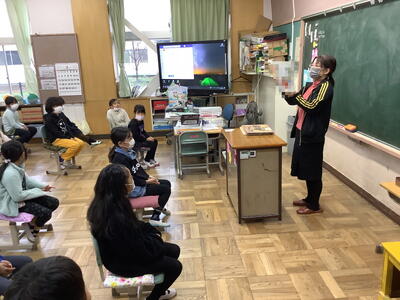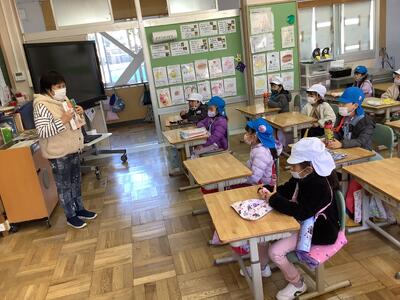 2月27日(月)。お昼休みを挟んで、松本幼稚園の園児の皆さんが長伏小学校に参観に来ました。