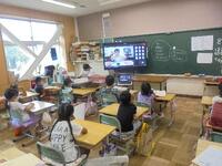 8月26日(金)朝。夏季休業明けの全校集会を校長室と各教室をオンラインでつないで行いました。校長先生がタマゴを使った実験を見せてくださり、水中に浮かぶタマゴは現在校長室前に置かれています。子どもたちは不思議そうに眺めています。いよいよ学校再開です!