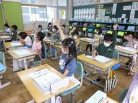 1年生算数の授業です。「あわせていくつ ふえるといくつ」を勉強しています。たしざんの基礎を勉強中。おうちでもいろいろ「あわせていくつ?」かやってみてくださいね~。