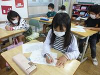 (写真左・中央)4年生 図工 (写真右)3年生 書写