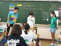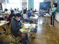 夏休み前の~授業の様子です。5年生英語の授業です。会話の練習をしています。