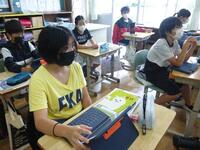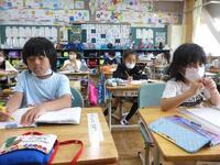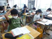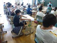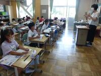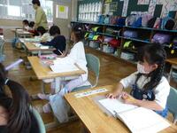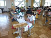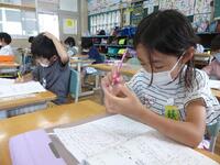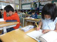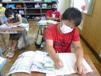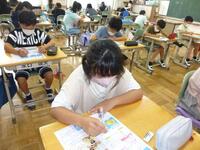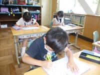 夏休み前の~授業の様子です。4年生国語の授業です。漢字ドリルを黙々と進めています。
