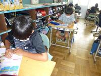 4年生、図工の授業です。いろいろな部品を使って作品を仕上げていきます。立体的に表す工夫が見せ所です。