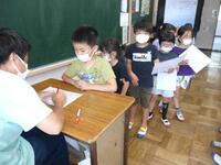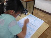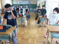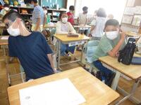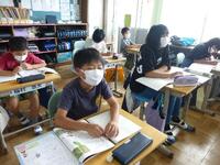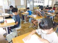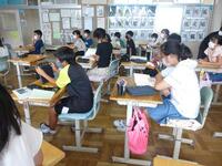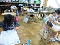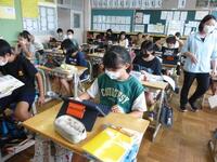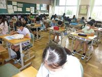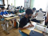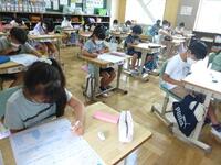 夏休み前の~授業の様子です。5年生理科の授業です。テストを受けています。エアコンが入っていてよかった。
