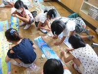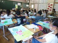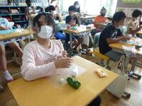 夏休み前の~授業の様子です。3年生図工の授業です。ぶどうの実を一つ一つ丁寧に作りました。このあと実を集めて完成です。