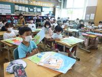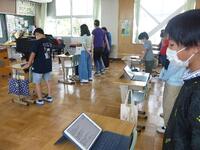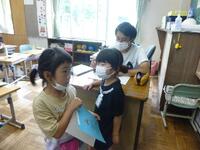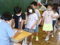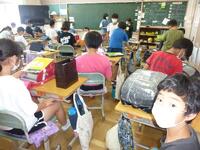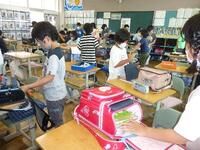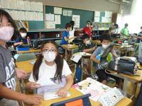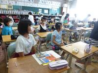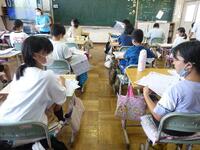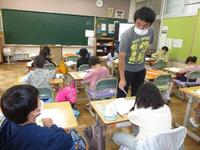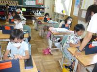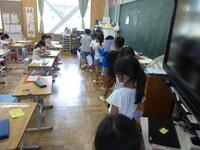 夏休み前の~授業の様子です。1年生、休み時間の様子です。体育の支度をおえました。レッツゴー!