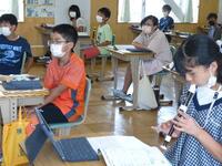 6年生授業の様子です。社会のまとめを行っています。6年生ともなるとかなりのスピードでタイピングできます。