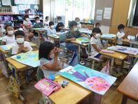 夏休み前の~授業の様子です。2年生国語の授業です。「月にのぼったうさぎ」を音読しているところです。