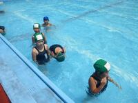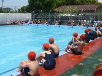 7月20日(水)3校時。5年生が着衣泳の学習をしました。万一の水難事故に備えて、「浮く」を目標に取り組みます。日頃身に付け慣れた体育着やシューズも水の中では勝手が違うようです。驚きや発見がたくさん詰まった1時間になりました。
