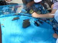 1年生生活科の授業の様子です。「ザリガニつり体験!」歓声?悲鳴?が上がってました!