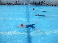 5年生体育「水泳」の授業の様子です。自己の目標に沿って練習していきます。。