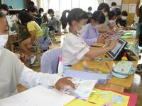 2年生の授業の様子です。ICT支援員さんの力をかりて、タブレットの使い方について学んでいます。eライブラリーはしっかりと使いこなせていました。さらなるテクニックを身に付けているところです。さすが2年生!