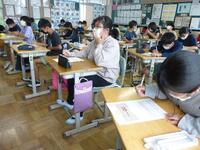 5年生授業の様子です。理科の授業です。「たしかめよう」問題を集中して解いているところです。