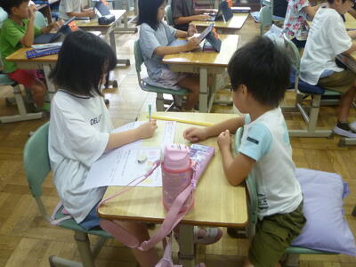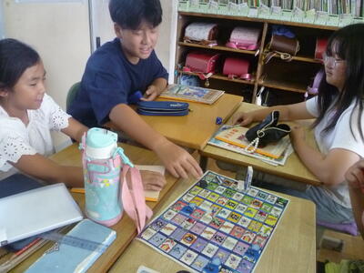 これまで学習した単語・構文を使って、グループですごろくゲームをしました。何度も話しているうちに、すらすらと英語で伝えることができるようになりました。