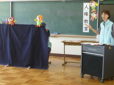 3校時に「子ども人権教室」がありました。三島市人権擁護委員協議会より6人の方々が来校し、いじめ・あったかことばをテーマに授業をしていただきました。人形劇やロールプレイを交えながら、普段の生活の一場面を取り上げ、テーマについて考えていくものでした。子ども達は、「人権は安心していられることが分かった」「人権教室のおかげで、友達が増えそう」「これからは友達とかを褒めていきたい」「あったか言葉をたくさん使っていきたい」等の感想をもちました。