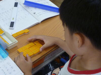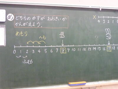 1組も2組も「かずのせん」の学習をしました。数直線に発展する内容です。子供達は、タイルを操作しながらどの数が入るのか確認しました。