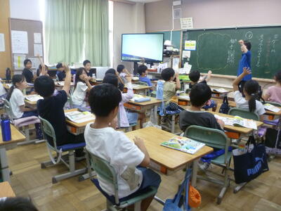 同じく3校時、3年2組はローマ字の学習をしました。今日は、伸ばす音に^←記号を付けていきましたが、まだ慣れていないのでどの文字に記号を付けるのか考えてしまう子が多かったです。何度も練習したり確認したりしました。