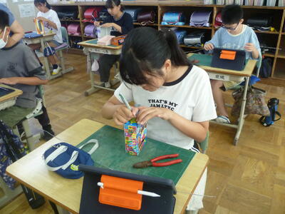 おもちゃ作りで、針金を曲げるときにペンチを使いましたが、初めて使う子が多く苦戦していました。どんな作品ができるか楽しみです。
