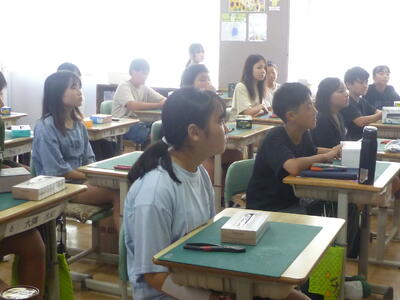 聴覚障害の方々の日常生活において困ることについて、子供達は一生懸命に考えていました。講師の方から「マスクをしていると、口の形や表情が読み取れなくて困るんですよ。災害時の放送やお知らせが届かなくて困ることが多いです。」という話に、子供達は納得の表情でした。お互いの立場を理解して思いやれる社会になるためにも、このような学習は必要だと感じています。