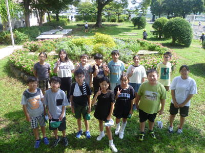 10日、FBC(フラワーブラボーコンクール)の審査で、審査員が来校しました。花壇の審査です。今年は、厳しい暑さのためマリーゴールドの元気がありません。他の、ニチニチソウやブルーサルビア、メランポジウムの花はとても元気にきれいな花を咲かせています。数人の園芸委員の子供がインタビューを受けました。