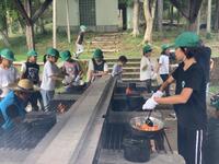 飯盒にお米をセットしたり、野菜を切ったり、カレー作りに挑戦中。