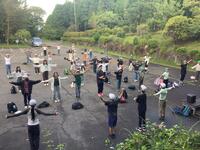 一晩仲間と過ごした子供たちが、集まってきました。ラジオ体操で元気注入です。