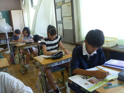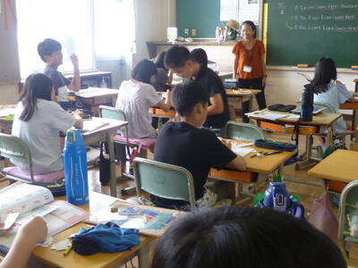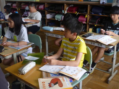 英語の文章を日本語に訳す、日本語の文章を英語に訳すことを繰り返し練習しました。子供達は習った単語、文法を使って学習できました。