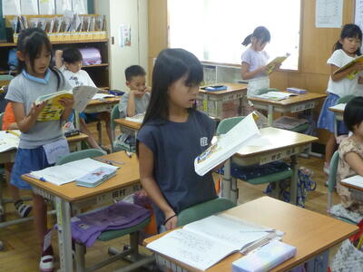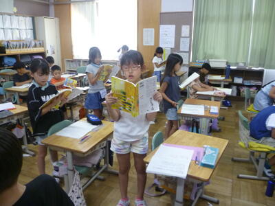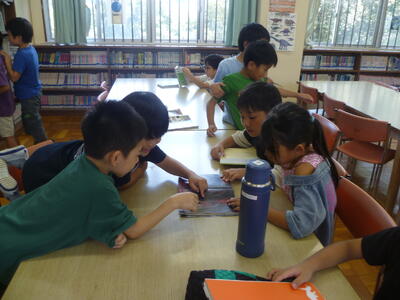 「ミリーのすてきなぼうし」の音読をしました。2人一組で交代しながら、読む人・聞く人のペアになりました。スピードはそれぞれ違いましたが、文章を暗記している子もいて、すらすら読めている様子に感心しました。
