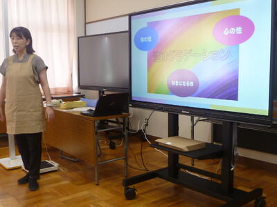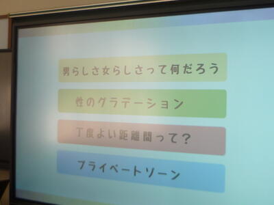 保健室の養護教諭から発育測定の前に、毎回、心身の健康のことや生活習慣に関することを話しています。今回は、心と体の「性」について成長段階に合わせて話をしています。
