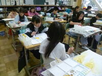 図画工作科では、絵を描きました。「ごんぎつね」のお話を国語科で学習したので、心に残るシーンを表現していきます。