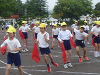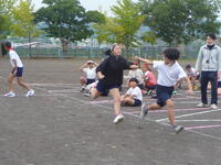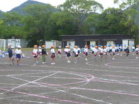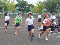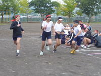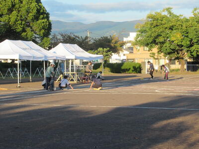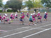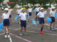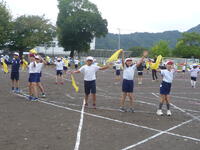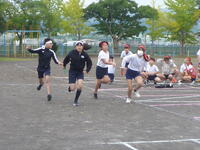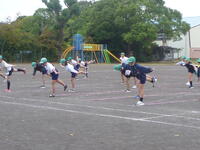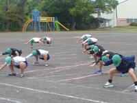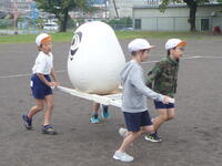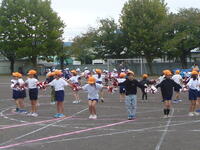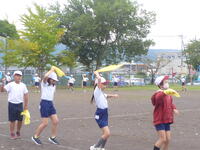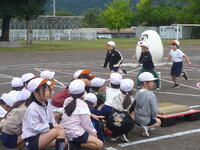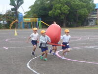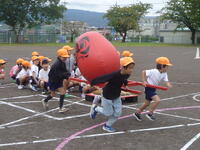 1・2年生合同の団体演技の練習前に、だるま運びリレーの練習をしました。1年生が「早いね」「上手だね」と言いながら応援している姿も微笑ましかったです。